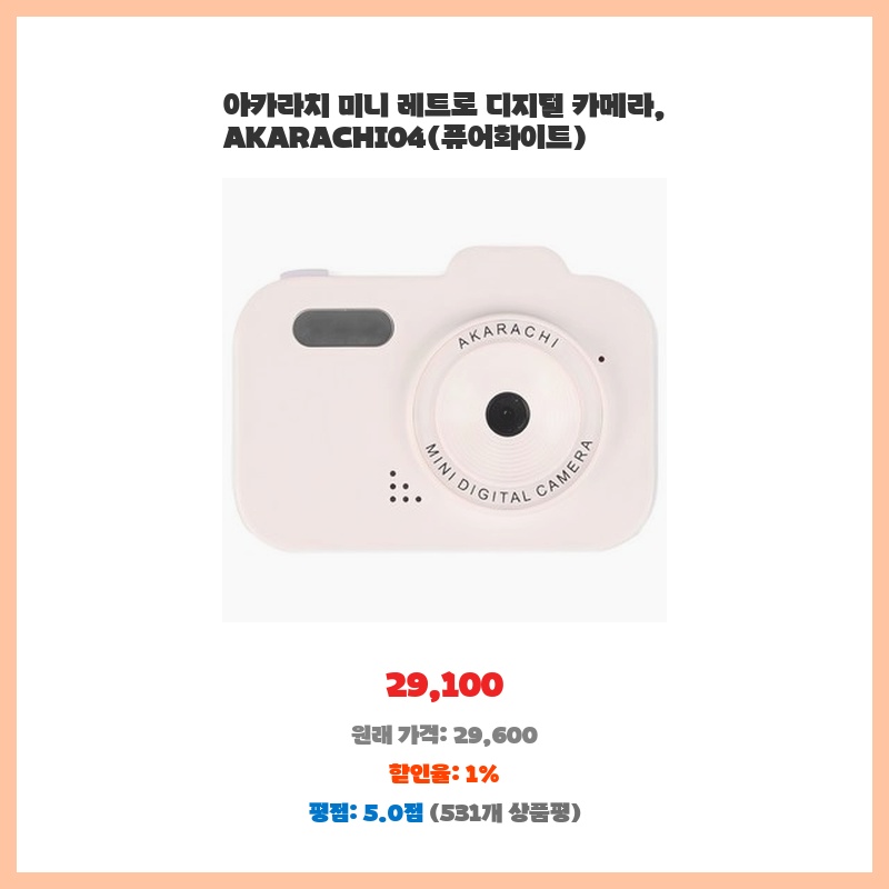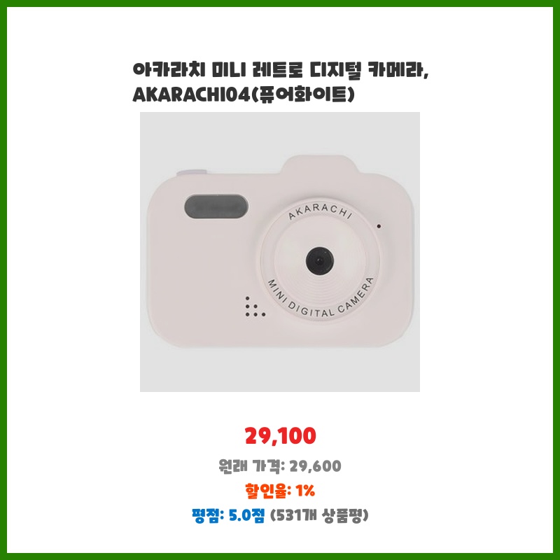 아카라치 미니 레트로 디지털 카메라, AKARACHI04(퓨어화이트)